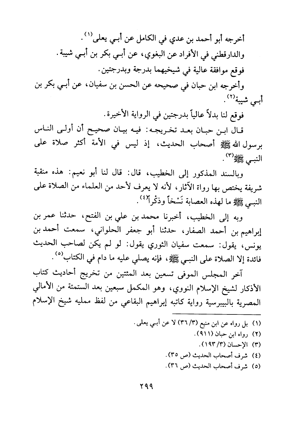 وبالسند المذكور إلى الخطيب، قال: قال لنا أبو نعيم: هذه منقبة شريفة يختص بها رواة الآثار، لأنه لا يعرف لأحد من العلماء من الصلاة على النبي صلى الله عليه وسلم ما لهذه العصابة نسخاً وذكراً.