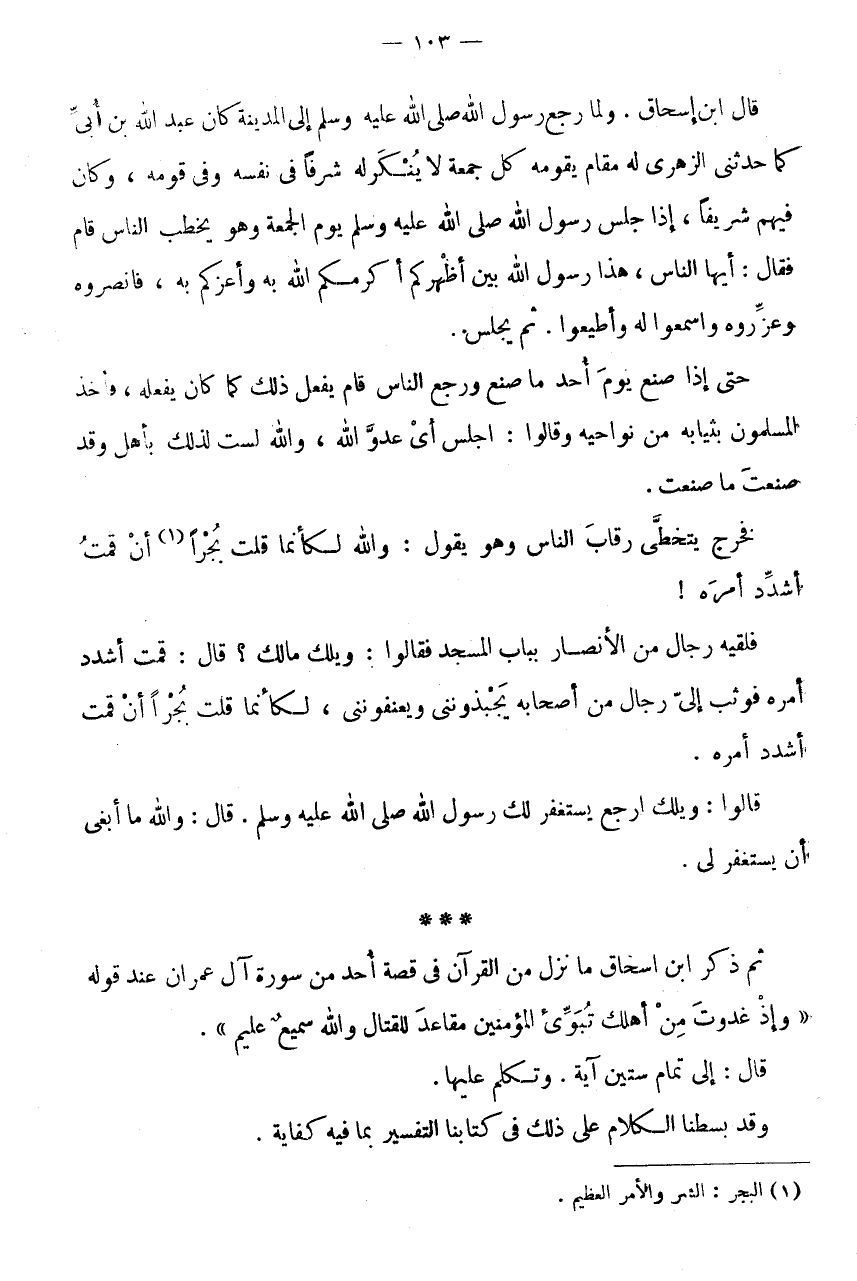 * * * ثُمَّ ذَكَرَ ابْنُ إِسْحَاقَ مَا نَزَلَ مِنَ الْقُرْآنِ فِي قِصَّةِ أُحُدٍ مِنْ سُورَةِ آلِ عِمْرَانَ عِنْدَ قَوْلِهِ
