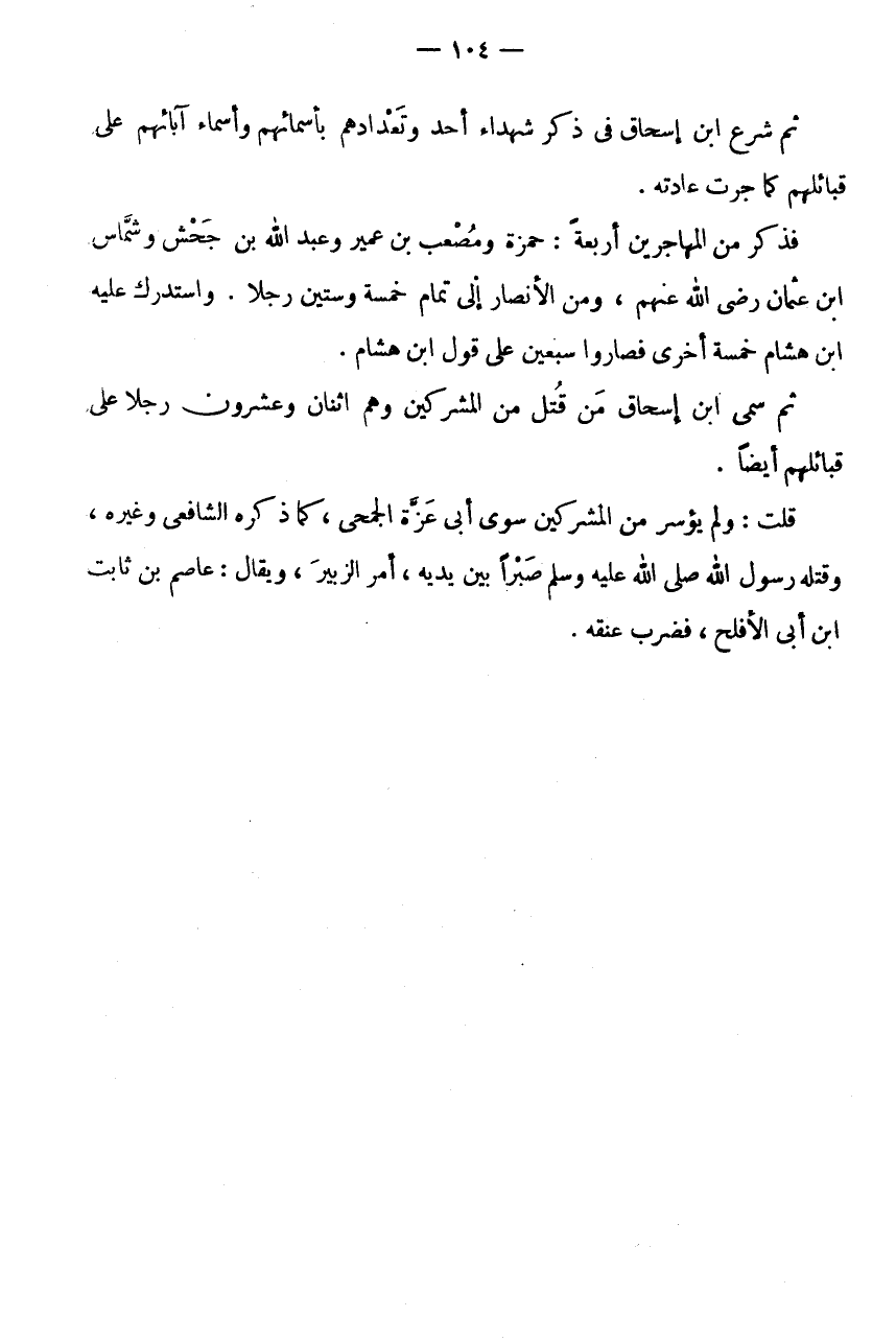 ثُمَّ شَرَعَ ابْنُ إِسْحَاقَ فِي ذِكْرِ شُهَدَاءِ أُحُدٍ وَتَعْدَادِهِمْ بِأَسْمَائِهِمْ وَأَسْمَاءِ آبَائِهِمْ عَلَى قَبَائِلِهِمْ كَمَا جَرَتْ عَادَتُهُ.
