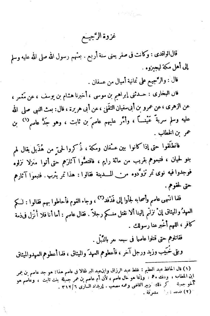 غَزْوَةُ الرَّجِيعِ قَالَ الْوَاقِدِيُّ: وَكَانَتْ فِي صَفَرٍ يَعْنِي سَنَةَ أَرْبَعٍ.