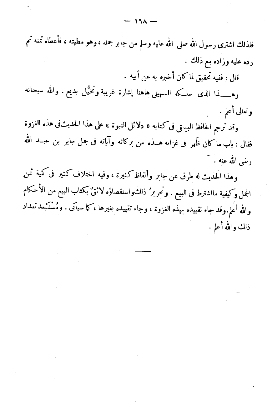 وَقَدْ تَرْجَمَ الْحَافِظُ الْبَيْهَقِيُّ فِي كِتَابِهِ " دَلَائِلِ النُّبُوَّةِ " عَلَى هَذَا الْحَدِيثِ فِي هَذِهِ الْغَزْوَة فَقَالَ: بَاب مَا كَانَ ظَهَرَ فِي غَزَاتِهِ هَذِهِ مِنْ بَرَكَاتِهِ وَآيَاتِهِ فِي جَمَلِ جَابِرِ بْنِ عَبْدِ اللَّهِ رَضِيَ اللَّهُ عَنْهُ.