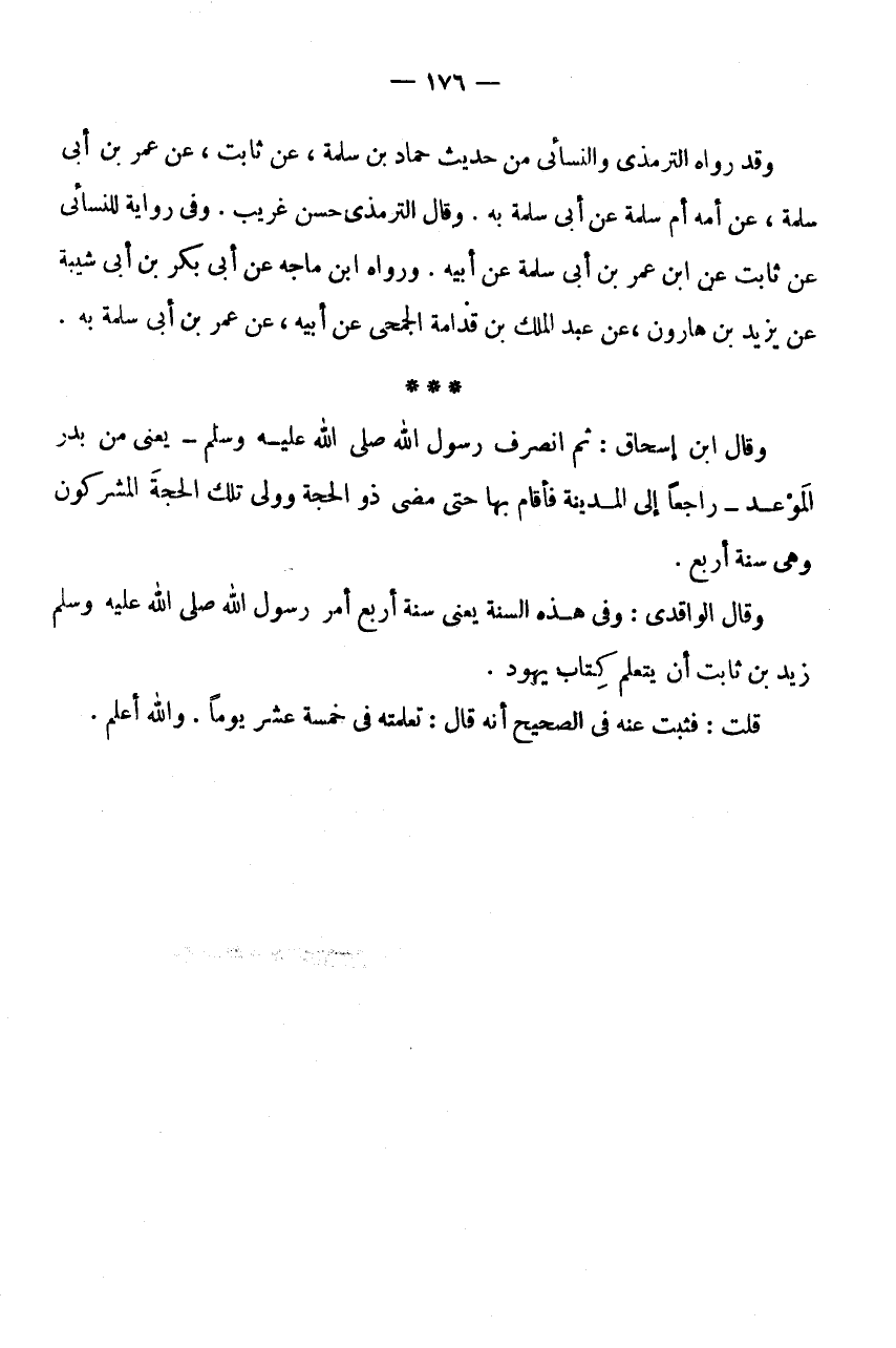 وَقَالَ الْوَاقِدِيُّ: وَفِي هَذِهِ السَّنَةِ يَعْنِي سَنَةَ أَرْبَعٍ أَمَرَ رَسُولُ اللَّهِ صَلَّى اللَّهُ عَلَيْهِ وَسَلَّمَ زَيْدَ بْنَ ثَابِتٍ أَنْ يَتَعَلَّمَ كِتَابَ يَهُودَ.