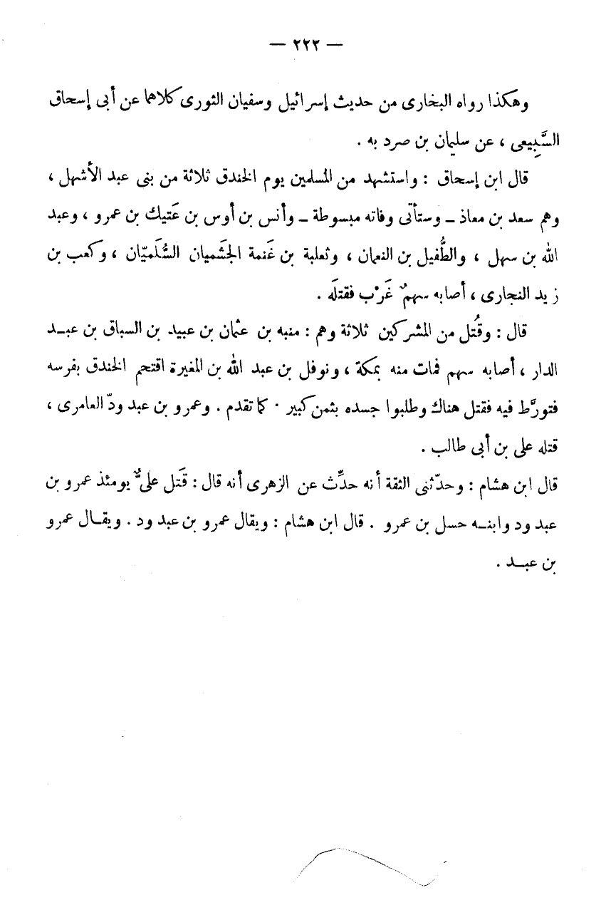 قَالَ ابْنُ هِشَامٍ: وَحَدَّثَنِي الثِّقَةُ أَنَّهُ حَدَّثَ عَنِ الزُّهْرِيِّ أَنَّهُ قَالَ: قَتَلَ عَلِيٌّ يَوْمَئِذٍ عَمْرَو بْنَ عَبْدِ وُدٍّ وَابْنَهُ حِسْلَ بْنَ عَمْرٍو.