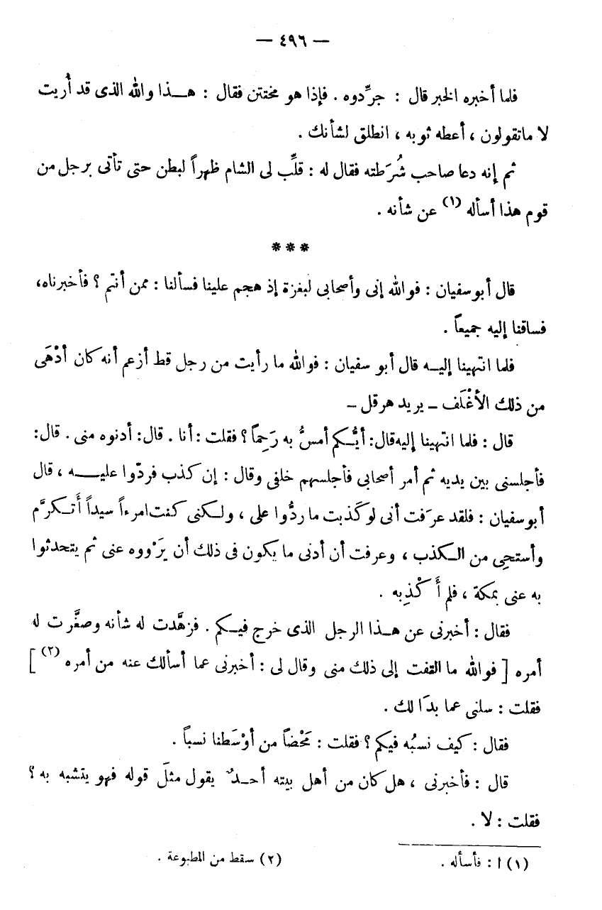 * * * قَالَ أَبُو سُفْيَانَ: فَوَاللَّهِ إِنِّي وَأَصْحَابِي لَبِغَزَّةَ إِذْ هَجَمَ عَلَيْنَا فَسَأَلَنَا: مِمَّنْ أَنْتُمْ؟ فَأَخْبَرْنَاهُ، فَسَاقَنَا إِلَيْهِ جَمِيعًا.