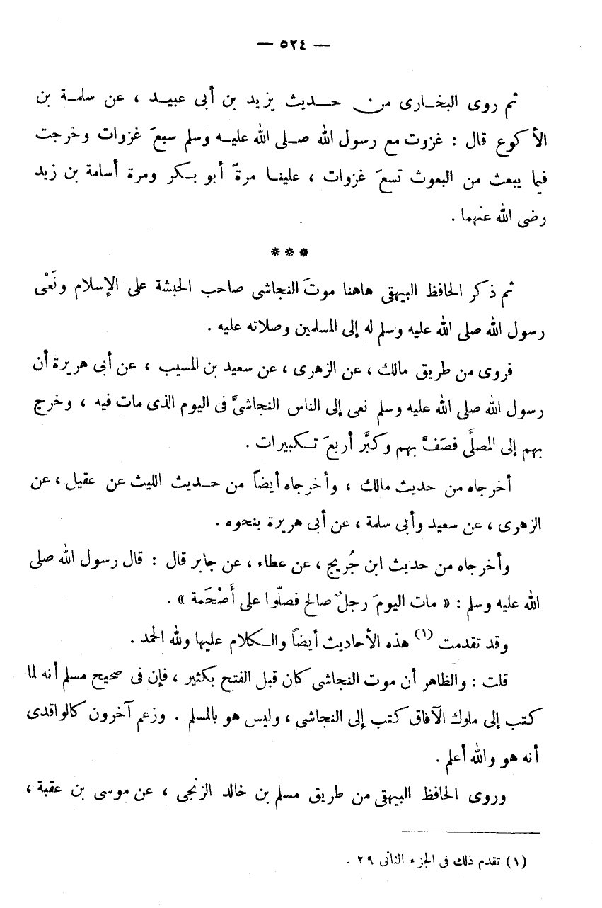 * * * ثُمَّ ذَكَرَ الْحَافِظُ الْبَيْهَقِيُّ هَاهُنَا مَوْتَ النَّجَاشِيِّ صَاحِبِ الْحَبَشَةِ عَلَى الْإِسْلَامِ وَنَعْيَ رَسُولِ اللَّهِ صَلَّى اللَّهُ عَلَيْهِ وَسَلَّمَ لَهُ إِلَى الْمُسْلِمِينَ وَصَلَاتَهُ عَلَيْهِ.