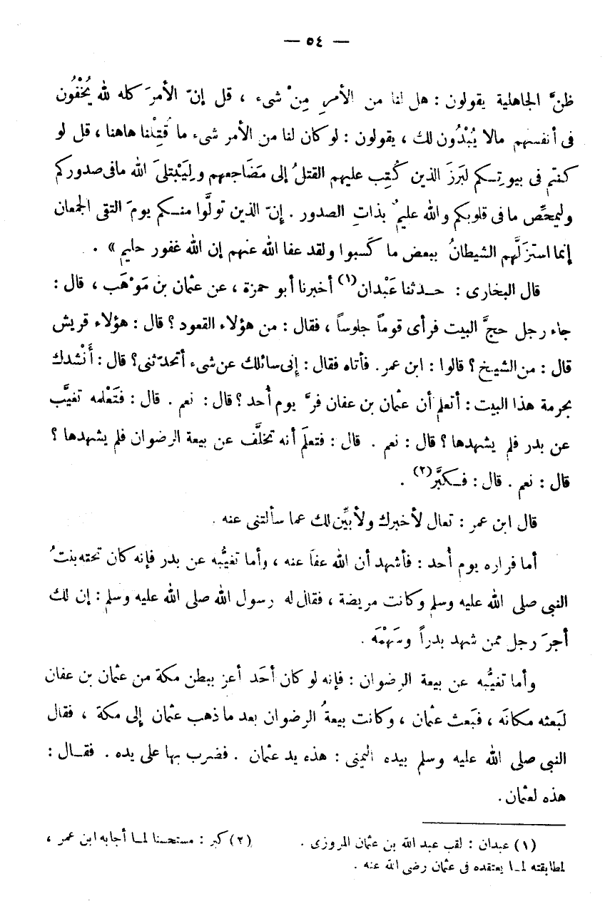 (2) كبر: مستحسنا لما أَجَابَهُ ابْن عمر، لمطابقته لما يَعْتَقِدهُ فِي عُثْمَان رضى الله عَنهُ.
