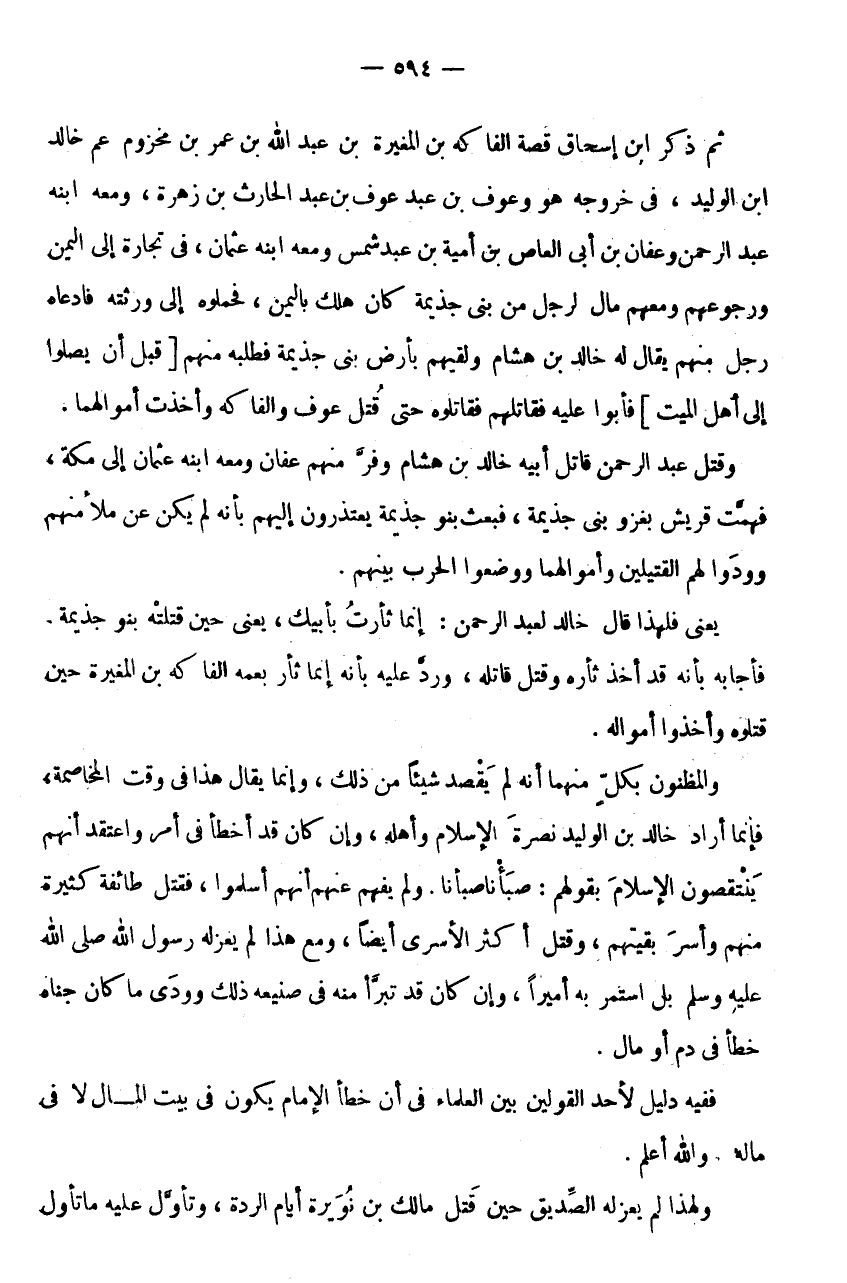 يَعْنِي فَلِهَذَا قَالَ خَالِدٌ لِعَبْدِ الرَّحْمَنِ: إِنَّمَا ثَأَرْتُ بِأَبِيكَ، يَعْنِي حِينَ قَتَلَتْهُ بَنُو جَذِيمَةَ.