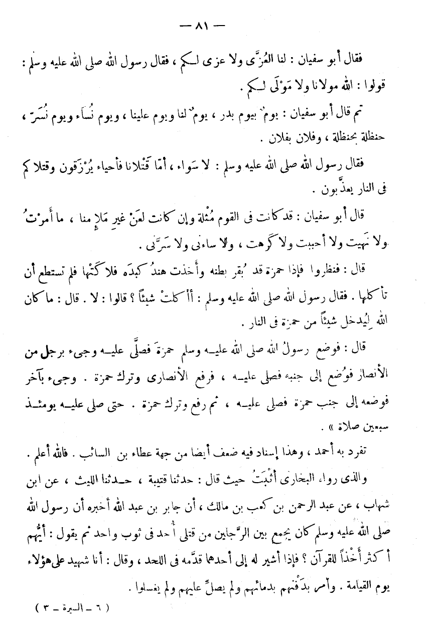قَالَ: فَنَظَرُوا فَإِذَا حَمْزَةُ قَدْ بُقِرَ بَطْنُهُ وَأَخَذَتْ هِنْدُ كَبِدَهُ فَلَاكَتْهَا فَلَمْ تَسْتَطِعْ أَنْ تَأْكُلَهَا.
