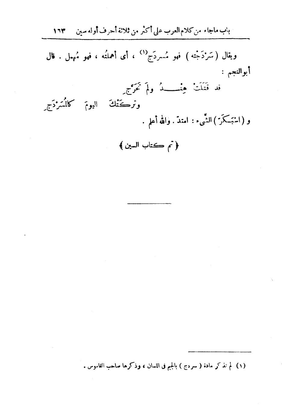 وَيُقَالُ (سَرْدَجْتُهُ) فَهُوَ مُسْرَدَجٌ، أَيْ أَهْمَلْتُهُ، فَهُوَ مُهْمَلٌ. قَالَ أَبُو النَّجْمِ: