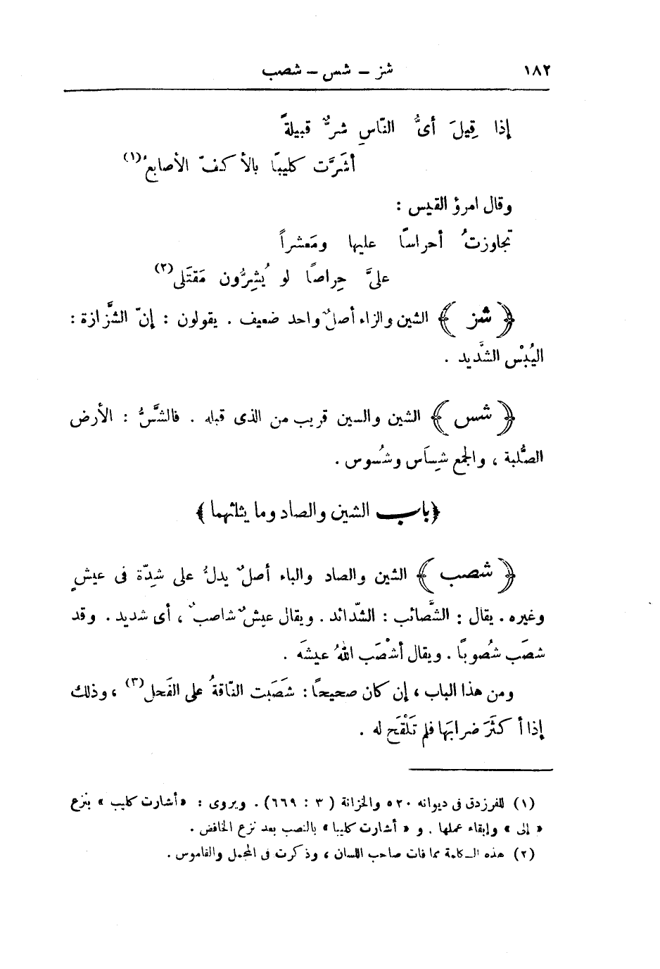 [بَابُ الشِّينِ وَالصَّادِ وَمَا يَثْلُثُهُمَا]