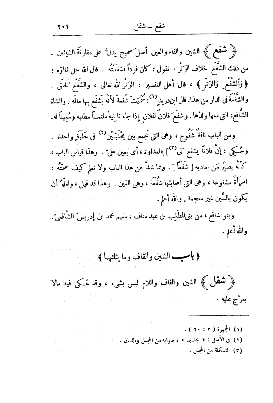 [بَابُ الشِّينِ وَالْقَافِ وَمَا يَثْلُثُهُمَا]