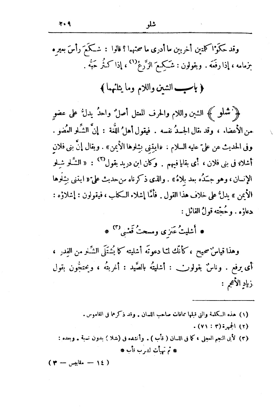 [بَابُ الشِّينِ وَاللَّامِ وَمَا يَثْلُثُهُمَا]