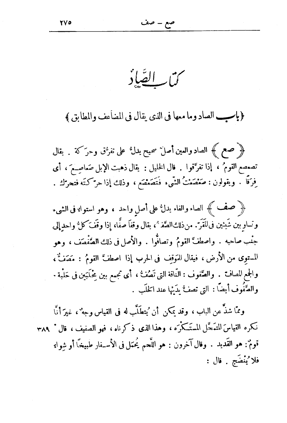 [كِتَابُ الصَّادِ] [بَابُ الصَّادِ وَمَا مَعَهَا فِي الَّذِي يُقَالُ فِي الْمُضَاعَفِ وَالْمُطَابِقِ]