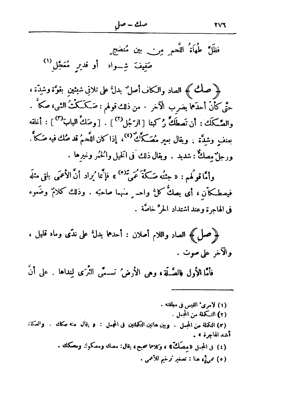 (صَلَّ) الصَّادُ وَاللَّامُ أَصْلَانِ: أَحَدُهُمَا يَدُلُّ عَلَى نَدًى وَمَاءٍ قَلِيلٍ، وَالْآخَرُ عَلَى صَوْتٍ.