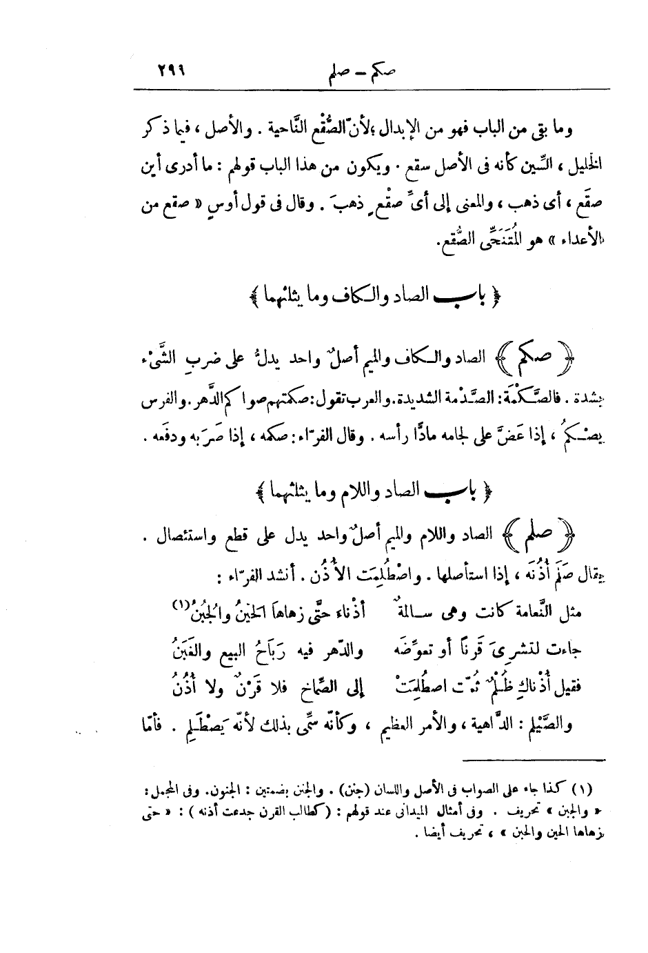 [بَابُ الصَّادِ وَاللَّامِ وَمَا يَثْلُثُهُمَا]