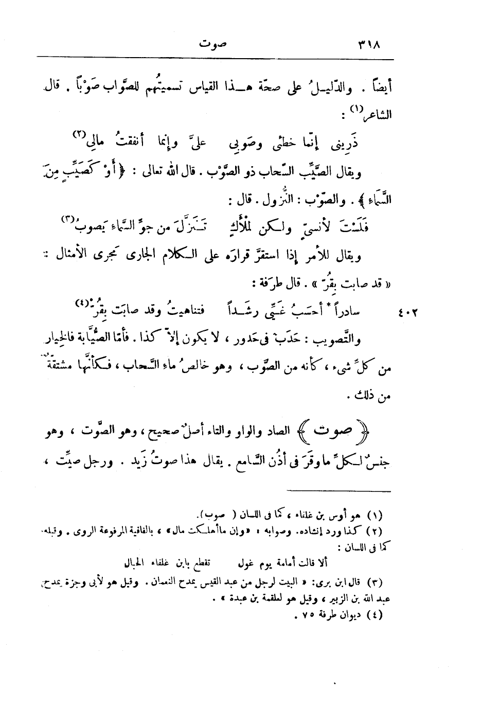 أَيْضًا. وَالدَّلِيلُ عَلَى صِحَّةِ هَذَا الْقِيَاسِ تَسْمِيَتُهُمْ لِلصَّوَابِ صَوْبًا. قَالَ الشَّاعِرُ: