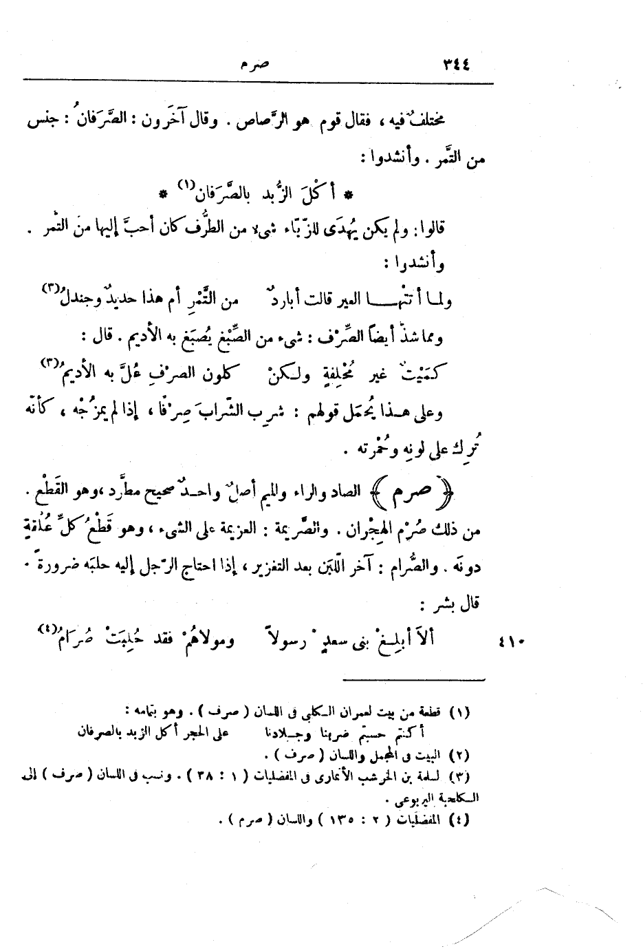 مُخْتَلَفٌ فِيهِ، فَقَالَ قَوْمٌ: هُوَ الرَّصَاصُ. وَقَالَ آخَرُونَ: الصَّرَفَانُ: جِنْسٌ مِنَ التَّمْرِ. وَأَنْشَدُوا: