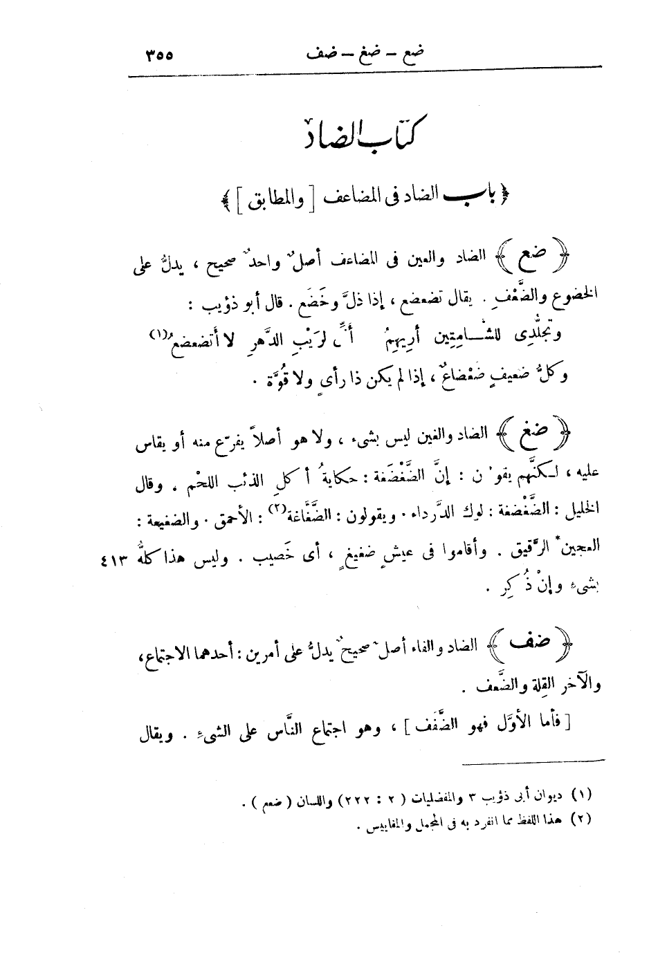 (كِتَابُ الضَّادِ بَابُ الضَّادِ فِي الْمُضَاعَفِ [وَالْمُطَابِقِ] )