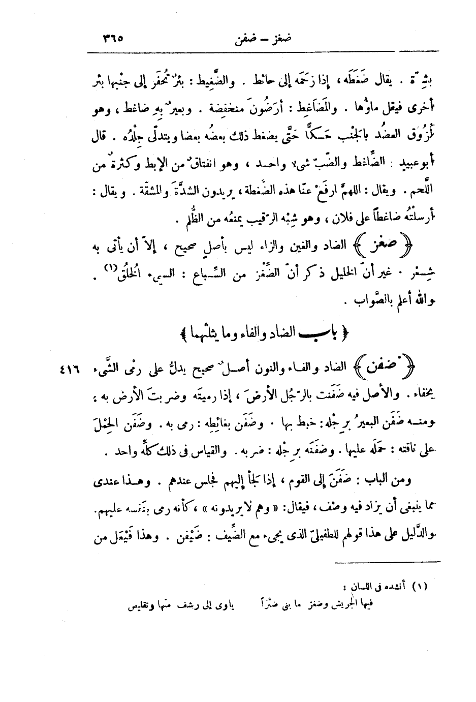 [بَابُ الضَّادِ وَالْفَاءِ وَمَا يَثْلُثُهُمَا]
