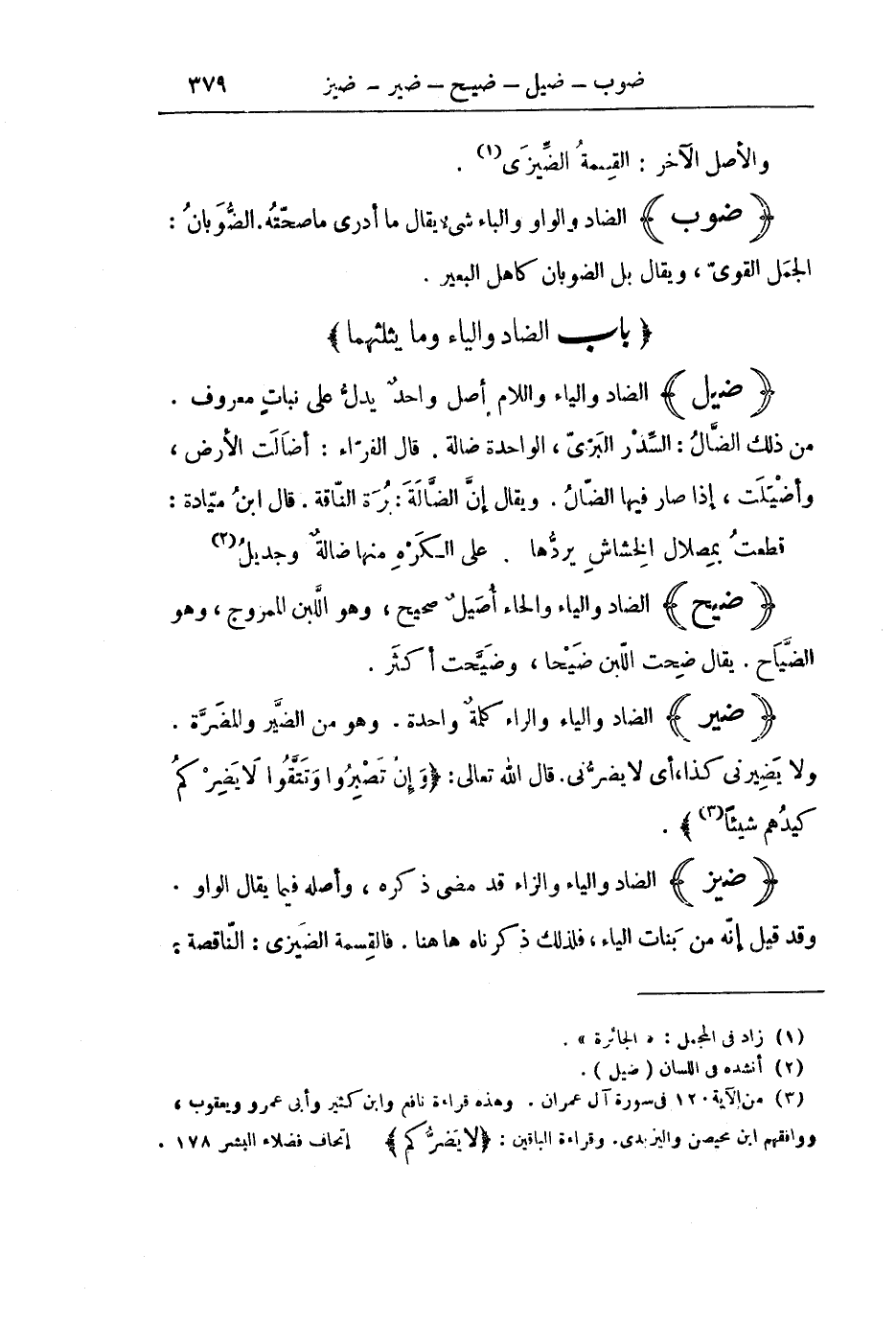 [بَابُ الضَّادِ وَالْيَاءِ وَمَا يَثْلُثُهُمَا]