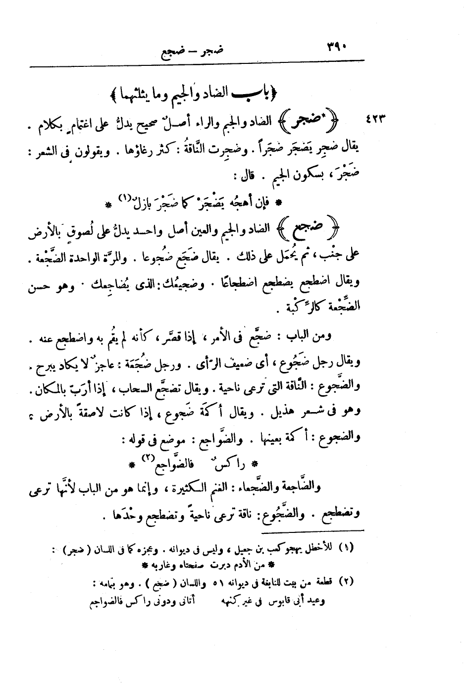 [بَابُ الضَّادِ وَالْجِيمِ وَمَا يَثْلُثُهُمَا]