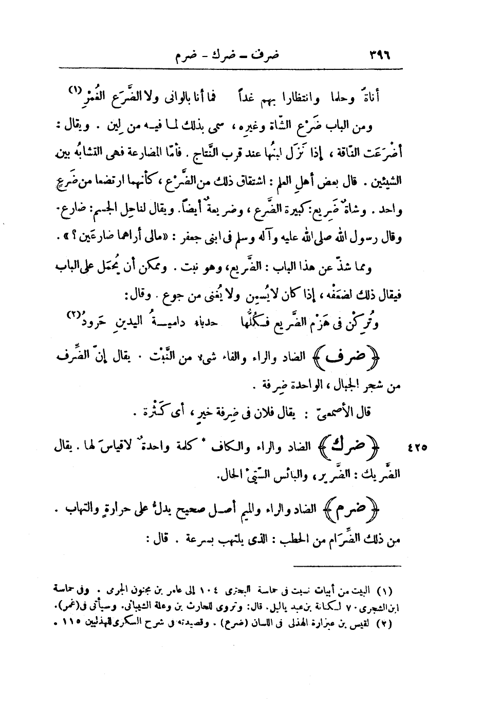 وَمِمَّا شَذَّ عَنْ هَذَا الْبَابِ: الضَّرِيعُ، وَهُوَ نَبْتٌ. وَمُمْكِنٌ أَنْ يُحْمَلَ عَلَى الْبَابِ فَيُقَالُ ذَلِكَ لِضَعْفِهِ، إِذَا كَانَ لَا يُسْمِنُ وَلَا يُغْنِي مِنْ جُوعٍ. وَقَالَ: