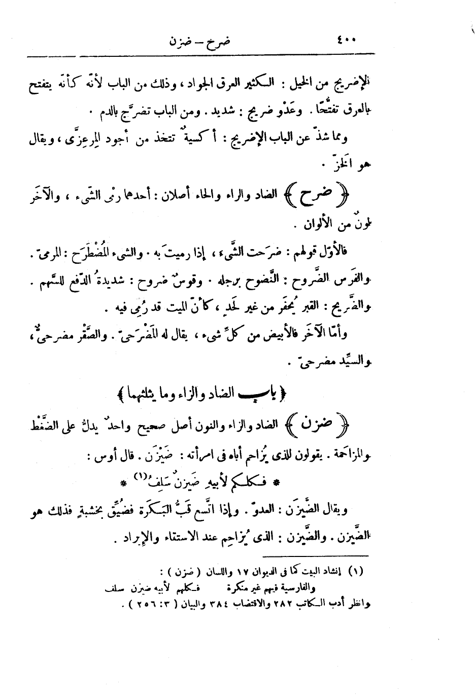 [بَابُ الضَّادِ وَالزَّاءِ وَمَا يَثْلُثُهُمَا]