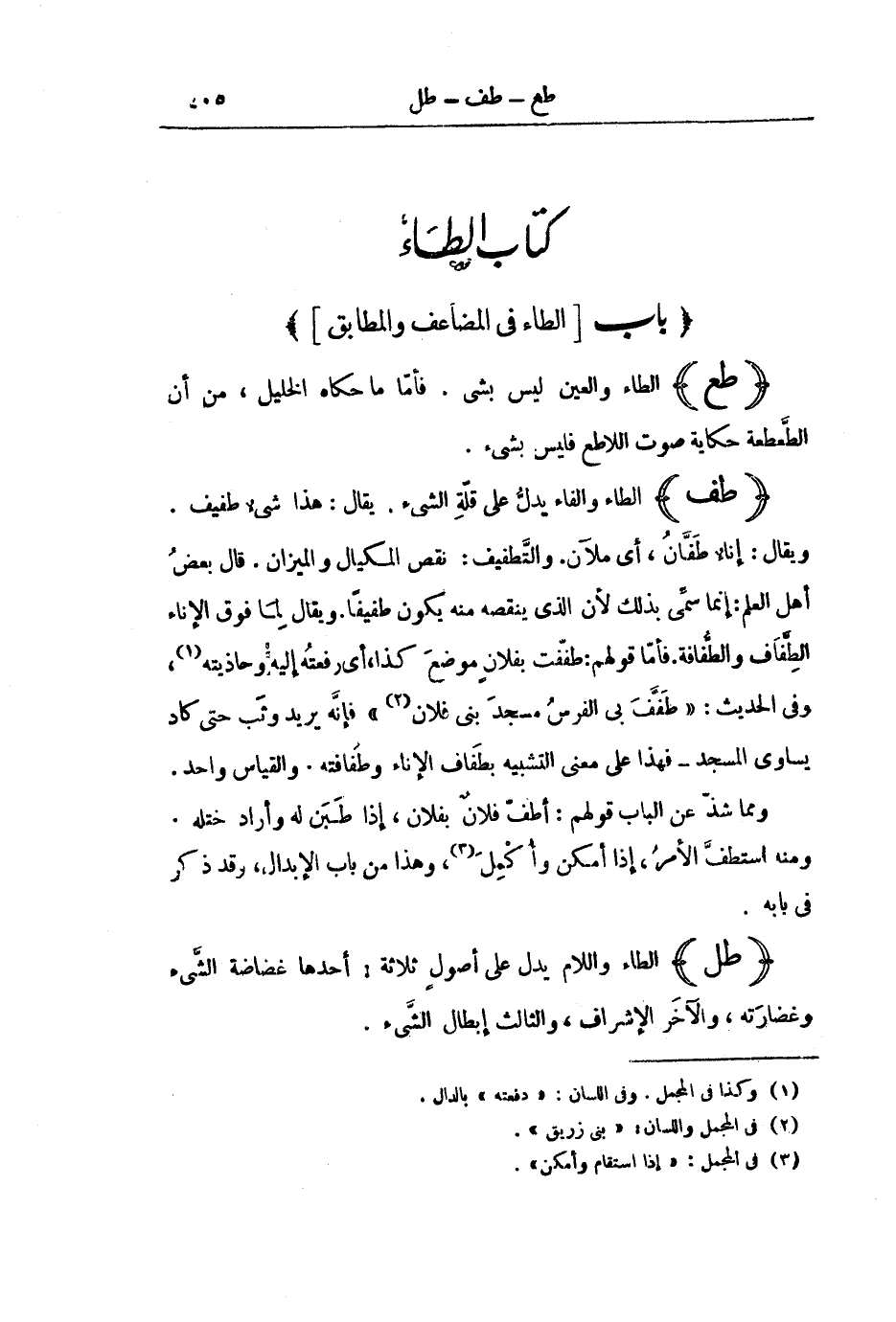[كِتَابُ الطَّاءِ] [بَابُ الطَّاءِ فِي الْمُضَاعَفِ وَالْمُطَابِقِ]
