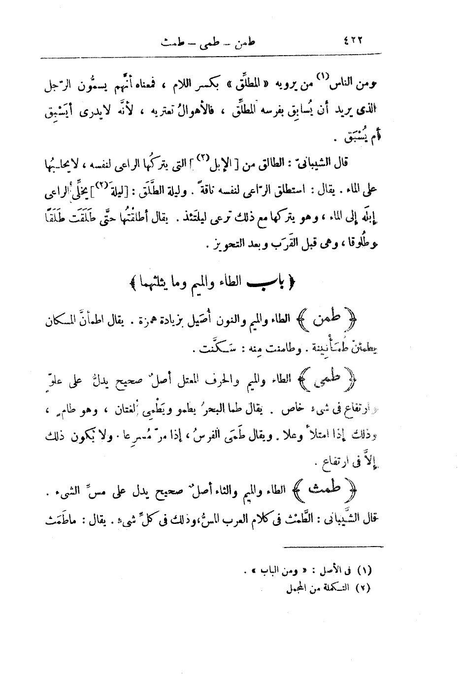 [بَابُ الطَّاءِ وَالْمِيمِ وَمَا يَثْلُثُهُمَا]