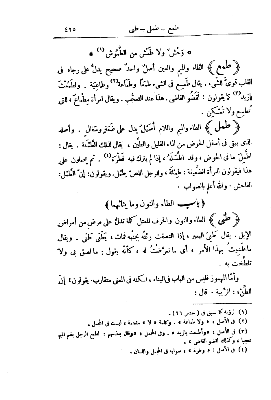 [بَابُ الطَّاءِ وَالنُّونِ وَمَا يَثْلُثُهُمَا]