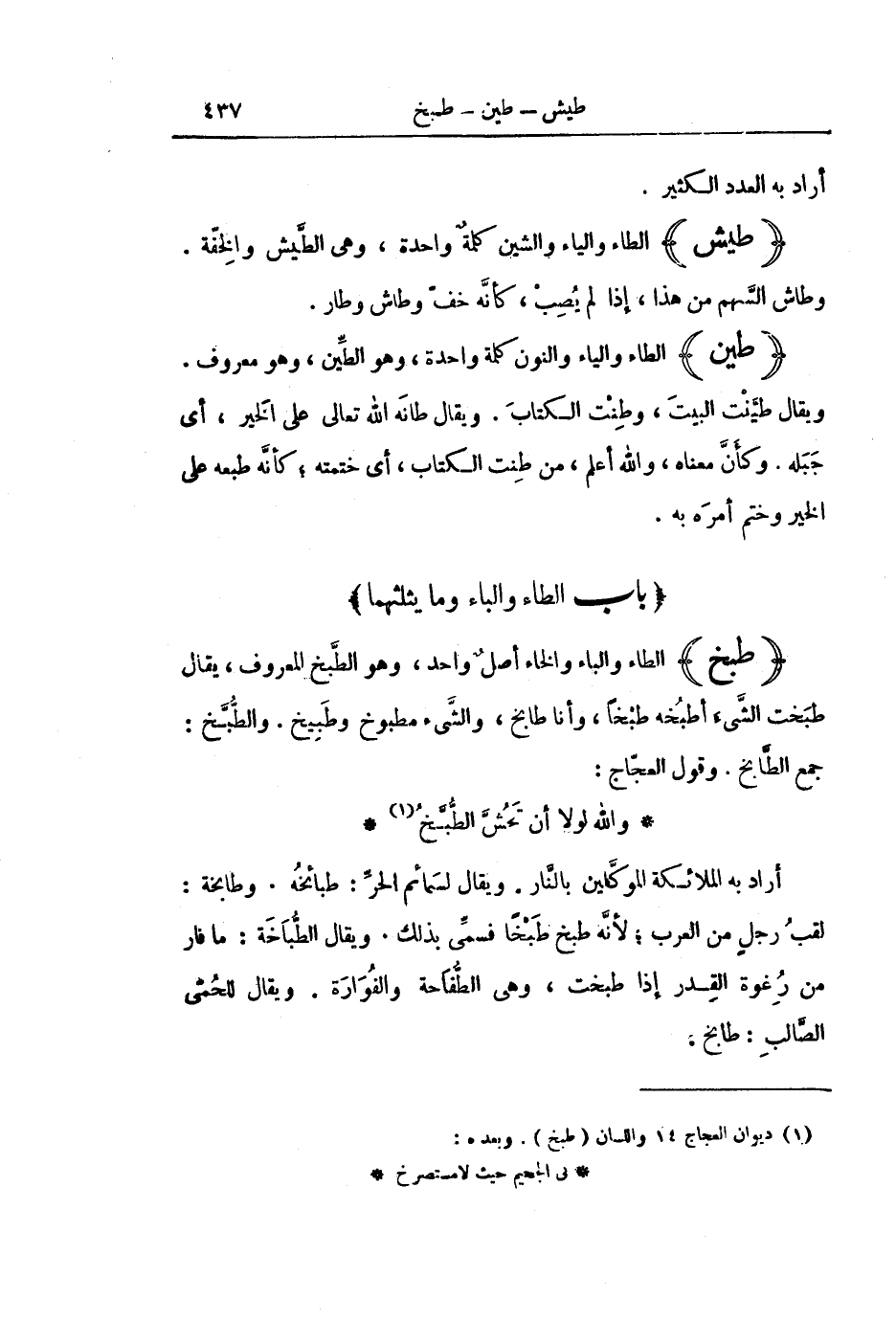 [بَابُ الطَّاءِ وَالْبَاءِ وَمَا يَثْلُثُهُمَا]
