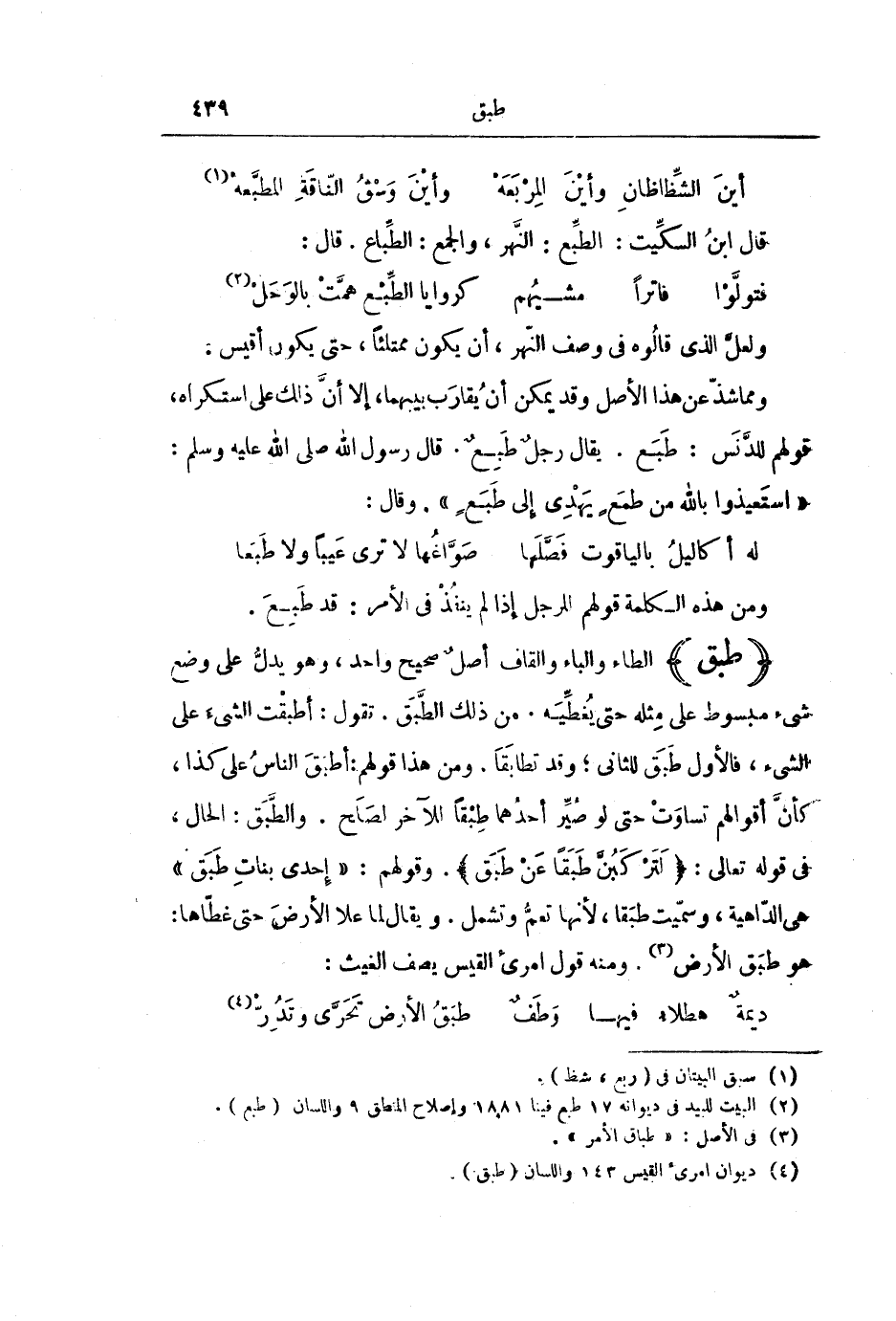 قَالَ ابْنُ السِّكِّيتِ: الطِّبْعُ: النَّهَرُ، وَالْجَمْعُ: الطِّبَاعُ. قَالَ: