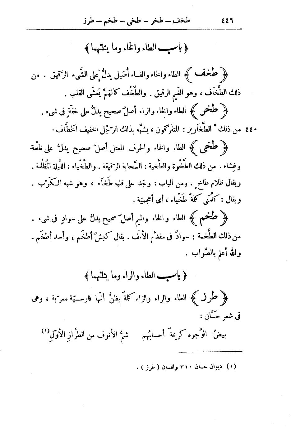 [بَابُ الطَّاءِ وَالْخَاءِ وَمَا يَثْلُثُهُمَا]