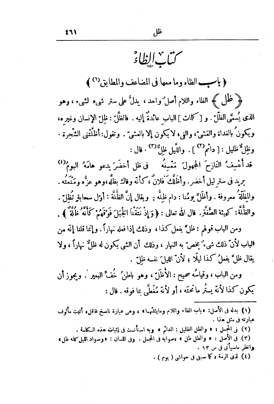 [كِتَابُ الظَّاءِ] [بَابُ الظَّاءِ وَمَا مَعَهَا فِي الْمُضَاعَفِ وَالْمُطَابِقِ]