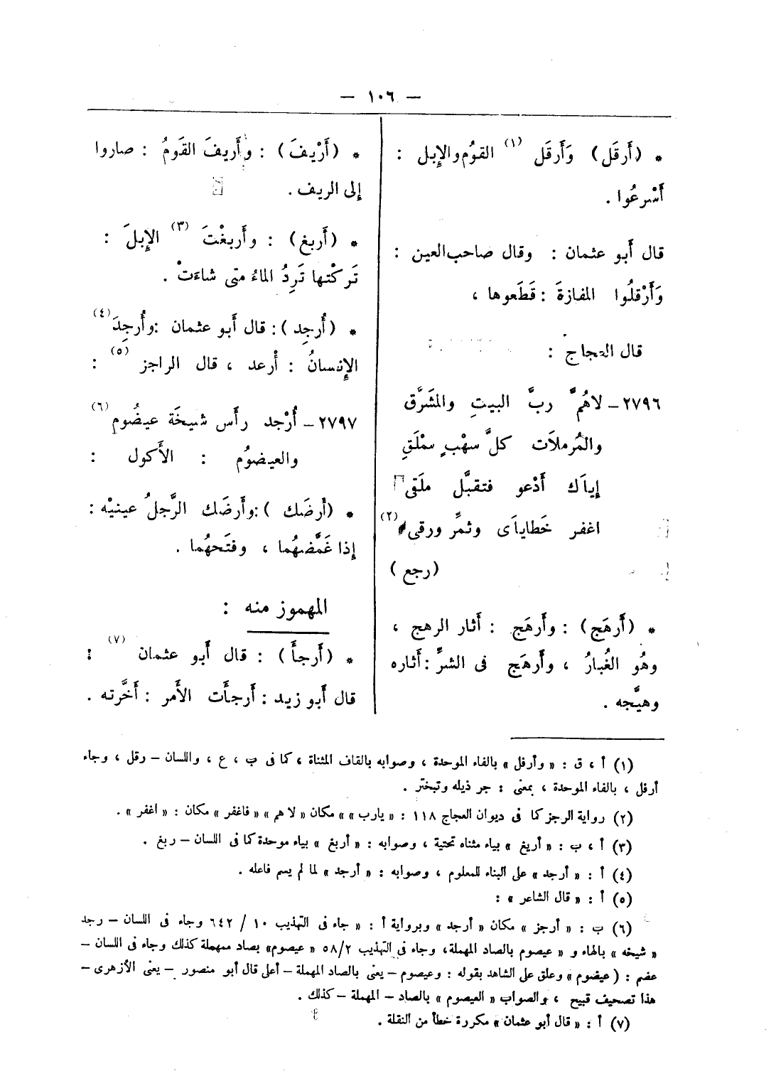 (¬4) أ: «أرجد» على البناء المعلوم، وصوابه: «أرجد» لما لم يسم فاعله.