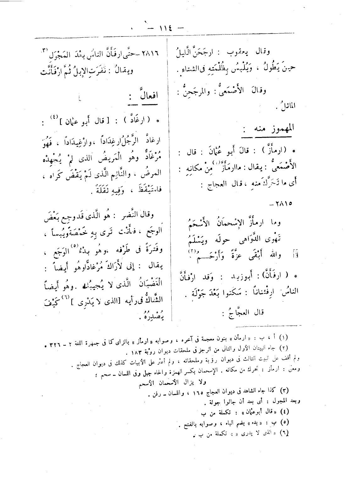 2816 - حتّى ارفأنّ الناس بعد المجول (¬3) … ويقال: نفرت الإبل ثمّ ارفأنّت