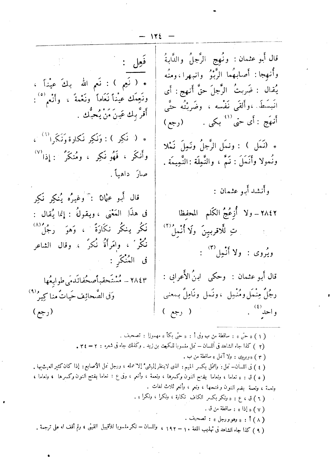 (¬5) ق: «نعاما، ونعاما بفتح النون وكسرها، ونعمة، وأنعم، وفى ع: نعاما بفتح النون وكسرها، ونعاما، ونعمة، ونعمة بضم النون وفتحها، ونعم، وأنعم ثلاث لغات.