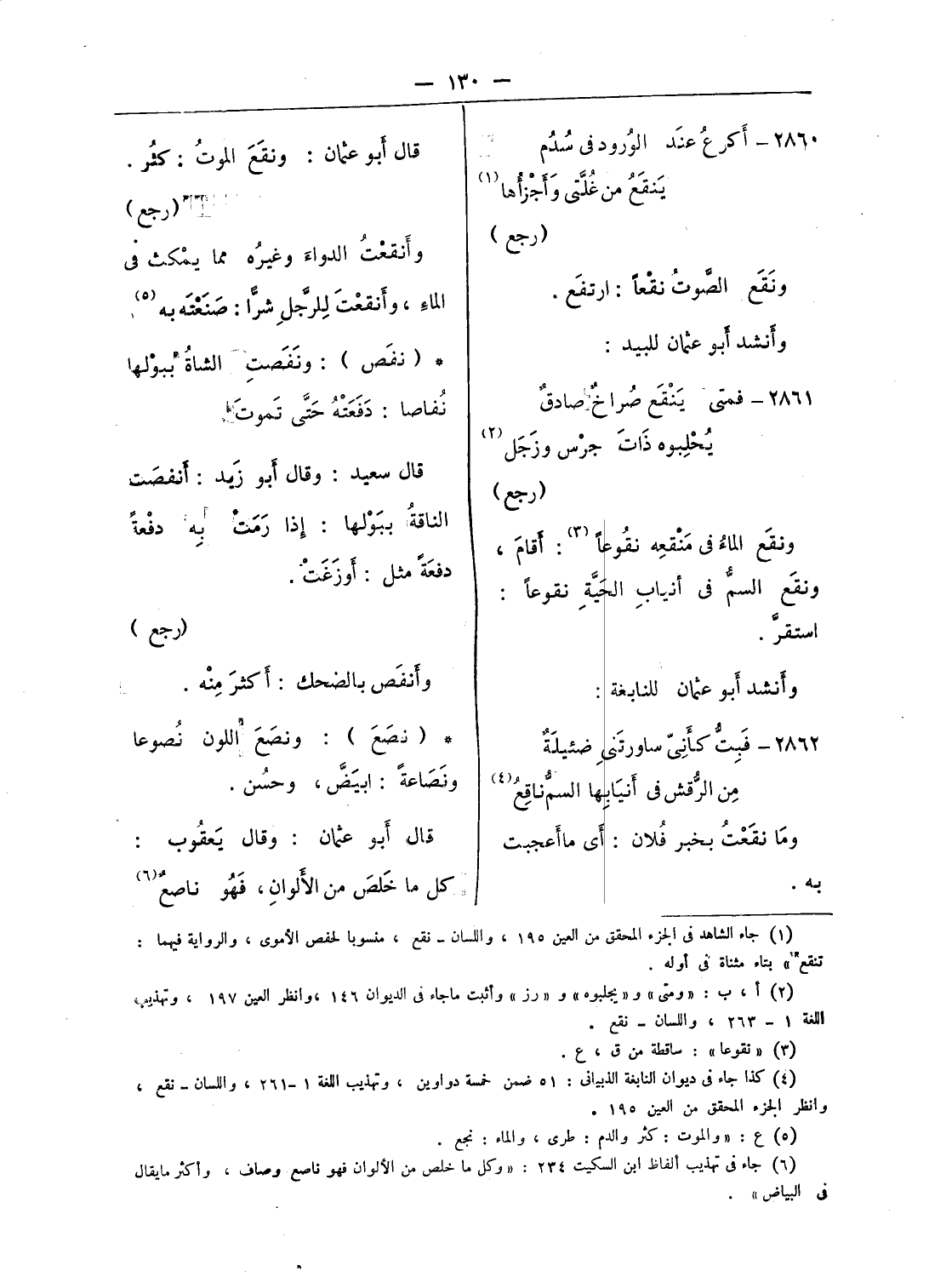 (¬1) جاء الشاهد فى الجزء المحقق من العين 195، واللسان - نقع، منسوبا لحفص الأموى، والرواية فيهما: