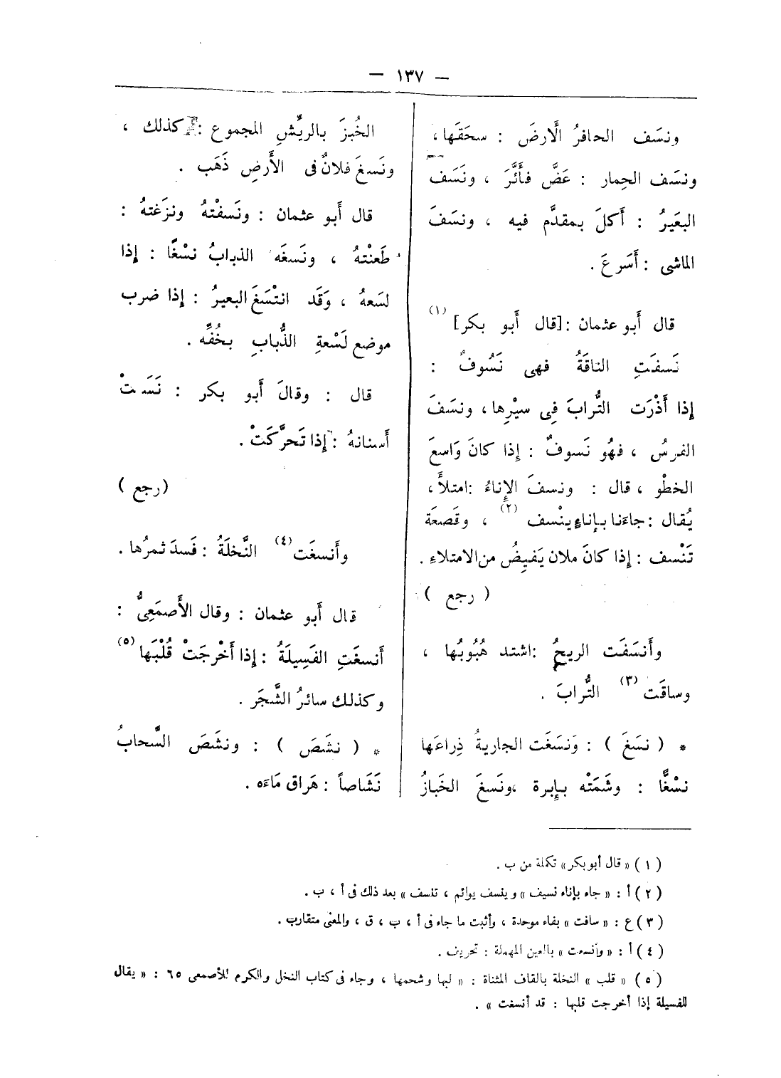 (¬2) أ: «جاء بإناء نسيف» وينسف يوائم، تنسف» بعد ذلك فى أ، ب.