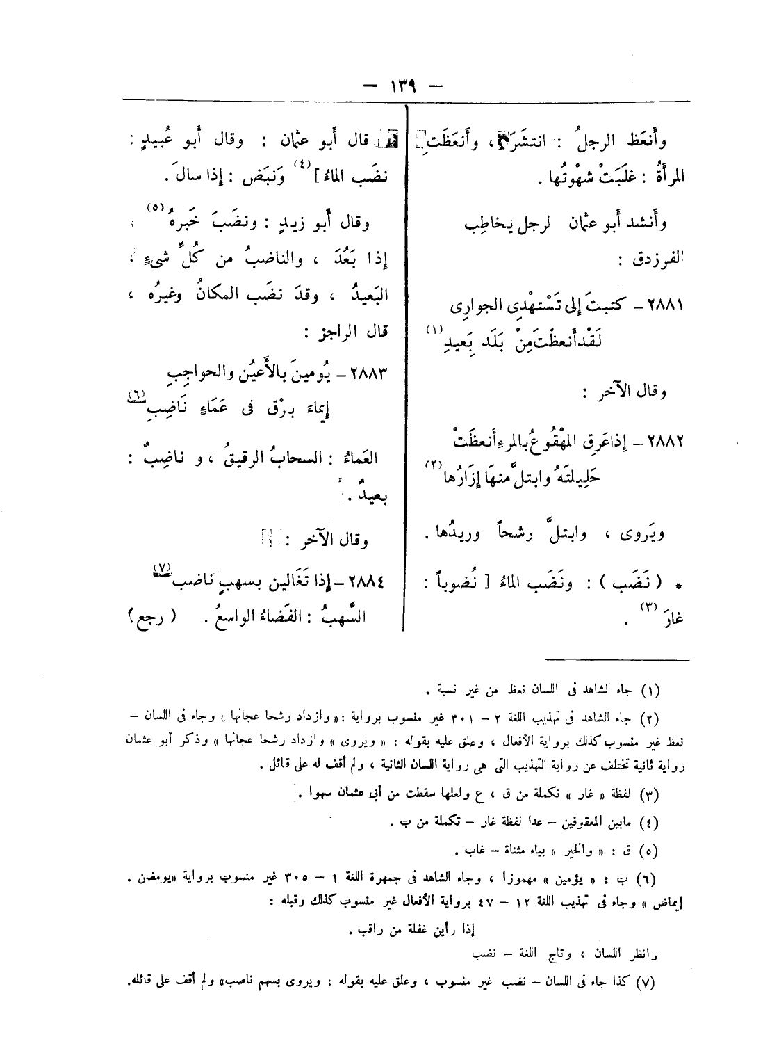 (¬7) كذا جاء فى اللسان - نضب غير منسوب، وعلق عليه بقوله: ويروى بسهم ناصب» ولم أقف على قائله.