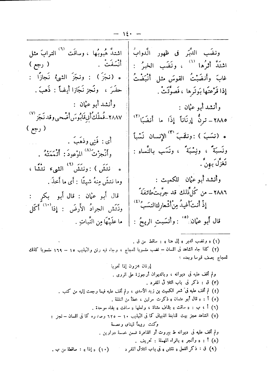 (¬2) كذا جاء الشاهد فى اللسان - نضب منسوبا للعجاج، وجاء فيه رنن والتهذيب 15 - 169 منسوبا كذلك للعجاج يصف قوسا وبعده: