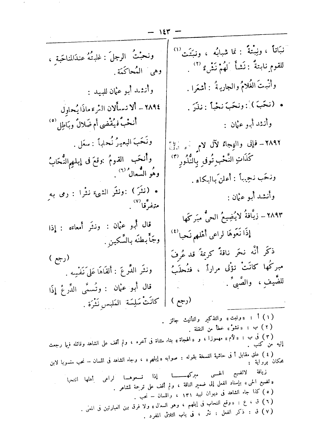 (¬5) كذا جاء الشاهد فى ديوان لبيد 131، واللسان - نحب.