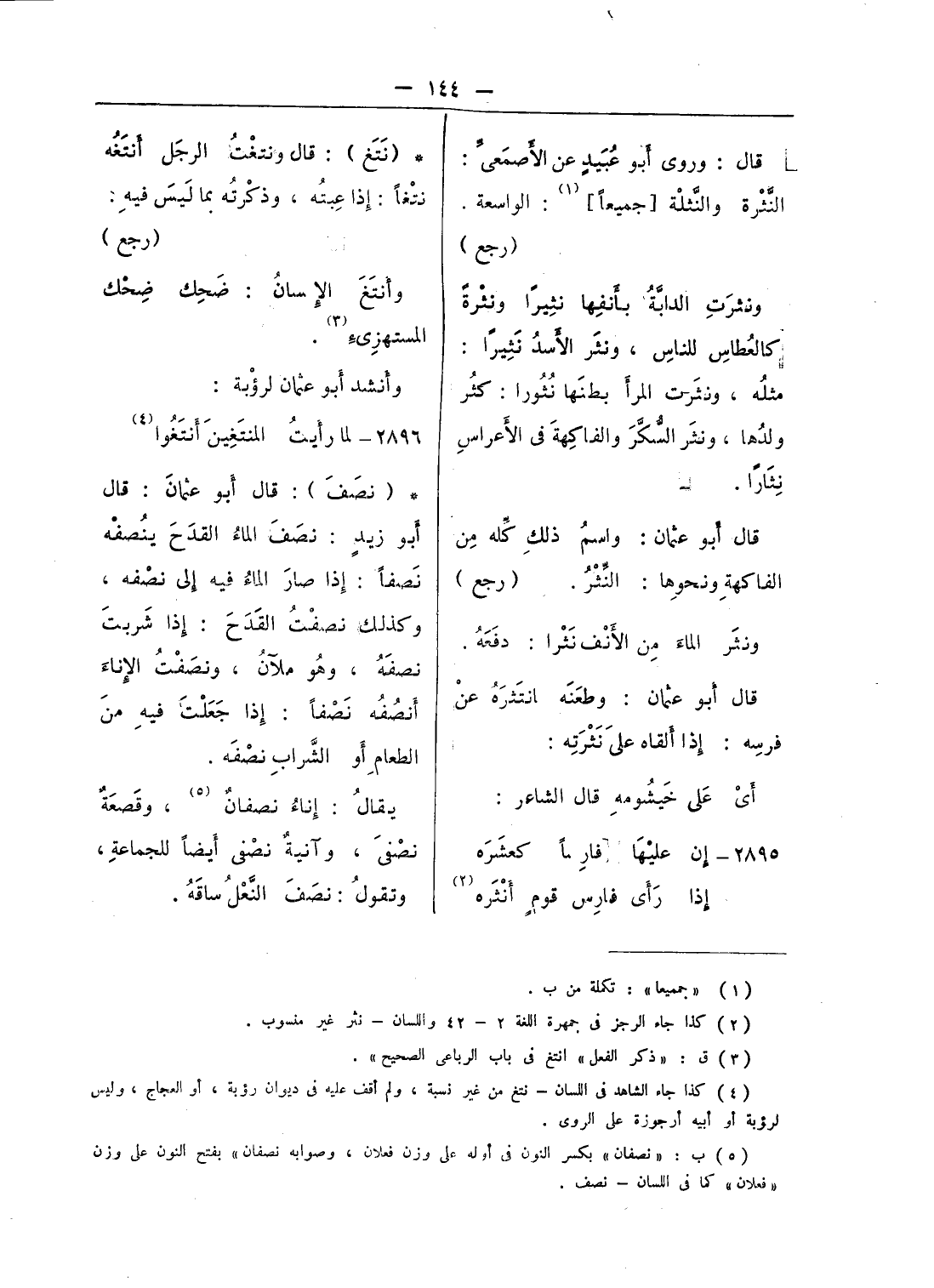 (¬5) ب: «نصفان» بكسر النون فى أوله على وزن فعلان، وصوابه نصفان» بفتح النون على وزن «فعلان» كما فى اللسان - نصف.