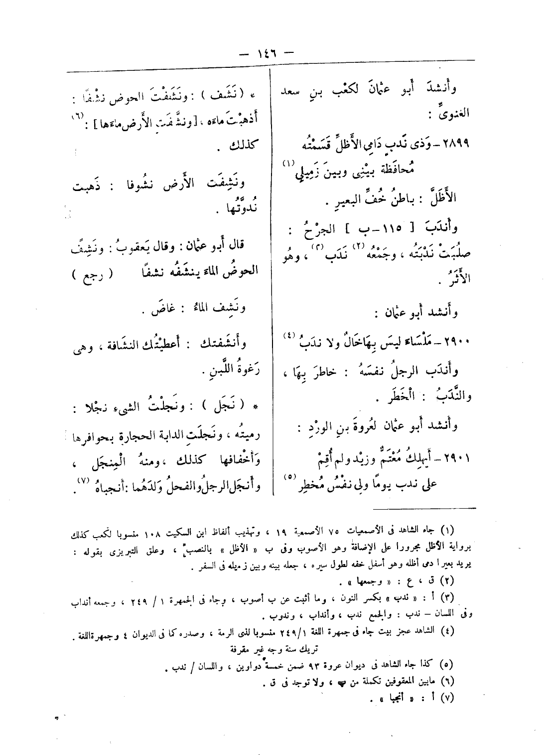 (¬5) كذا جاء الشاهد فى ديوان عروة 93 ضمن خمسة دواوين، واللسان/ ندب.