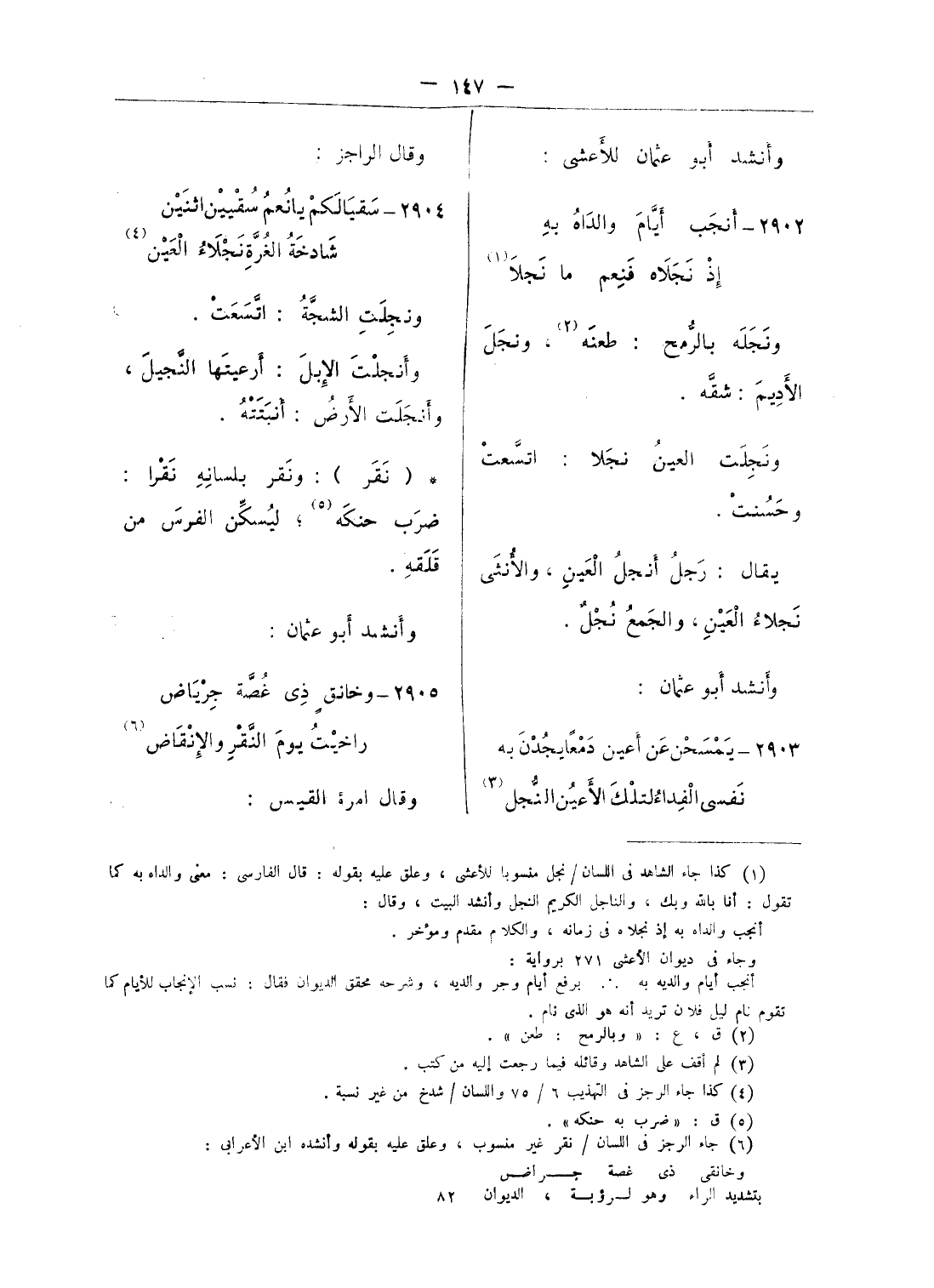 2903 - يمسحن عن أعين دمعا يجدن به … نفسى الفداء لتلك الأعين النّجل (¬3)