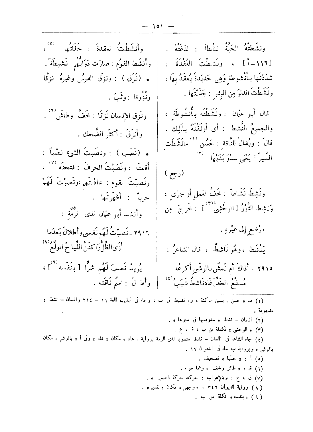 (¬1) ب «حسن» بسين ساكنة، ولم تضبط فى ب، وجاء فى تهذيب اللغة 11 - 214 واللسان - نشط: