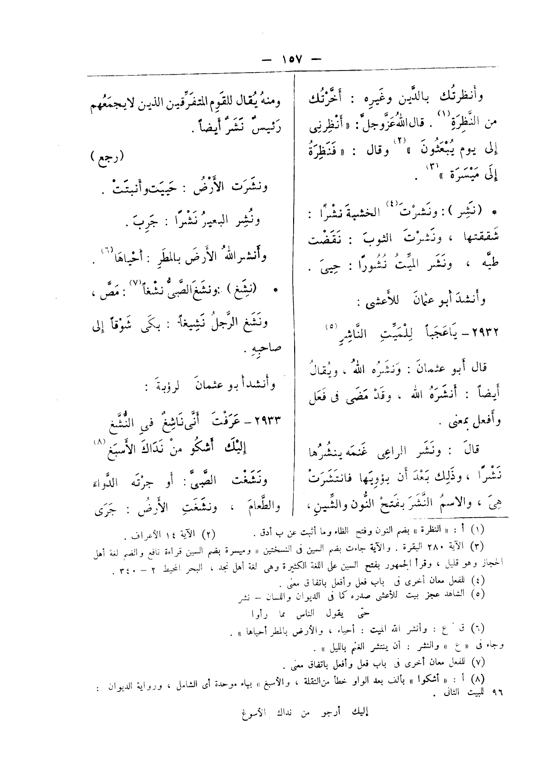 2933 - عرفت أنّى ناشغ فى النّشّغ … إليك أشكو من نداك الأسبغ (¬8)