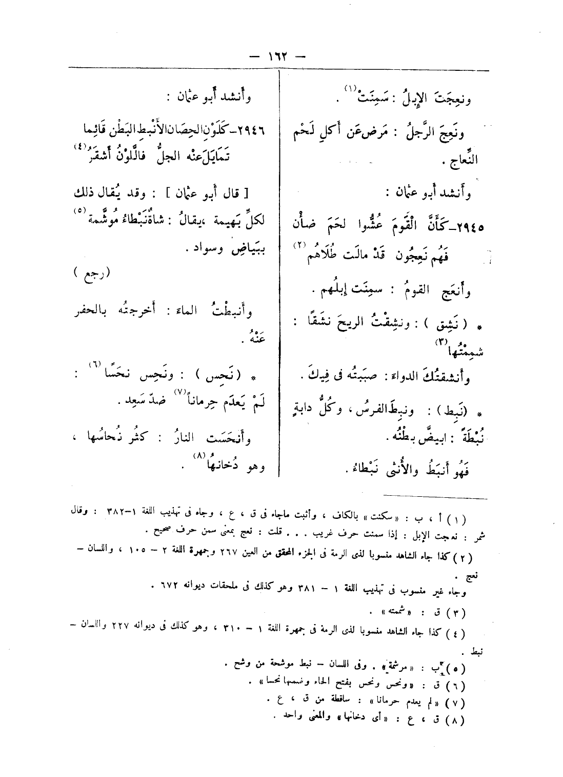 (¬1) ا، ب: «سكنت» بالكاف، وأثبت ما جاء فى ق، ع، وجاء فى تهذيب اللغة 1 - 382: وقال شمر: نعجت الإبل: إذا سمنت حرف غريب ... قلت: نعج بمعنى سمن حرف صحيح.