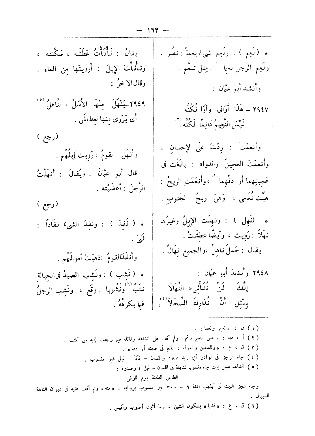 (¬5) الشاهد عجز بيت جاء منسوبا النابغة فى اللسان - نهل، وصدره: