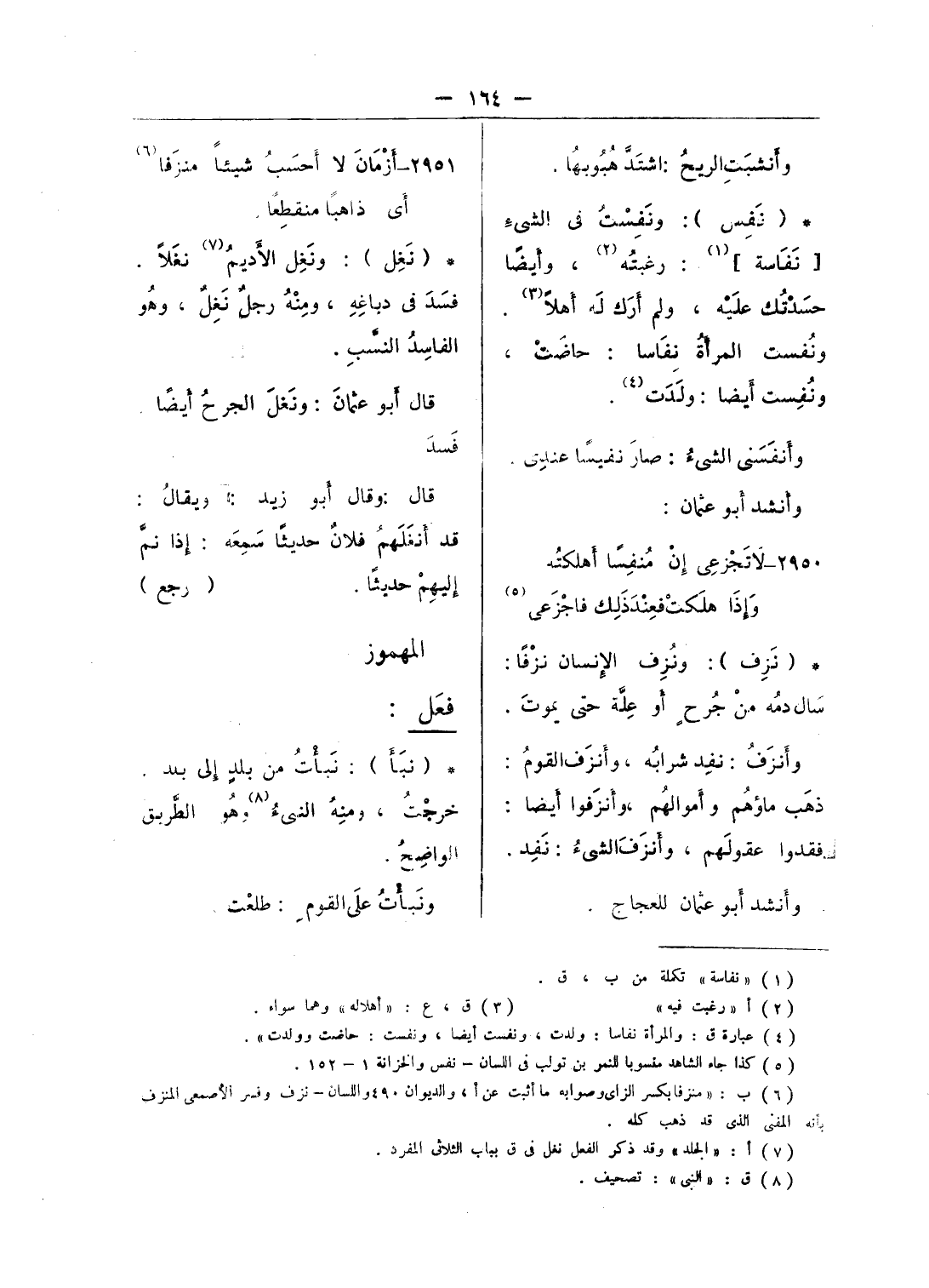 (¬5) كذا جاء الشاهد منسوبا للنمر بن تولب فى اللسان - نفس والخزانة 1 - 152.